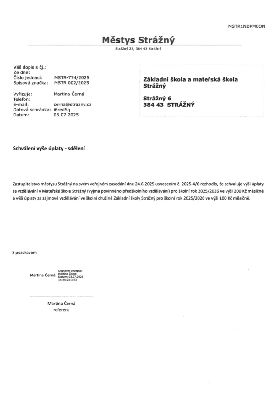 věnujte prosím pozornost pravidlům při odhlašování obědů Vašich dětí. Pokud je dítě nemocné, nedochází k odhlašování obědů "automaticky". Omluvením dítěte ve škole či školce není dítě automaticky odhlášeno z odběru obědů, tuto informaci musí obdržet vedoucí ŠJ pí Křížová přímo od Vás. Držte se tedy prosím následujícího postupu, se kterým jste se seznámili již při vyplňování formuláře k přihlášení obědů na tento školní rok.